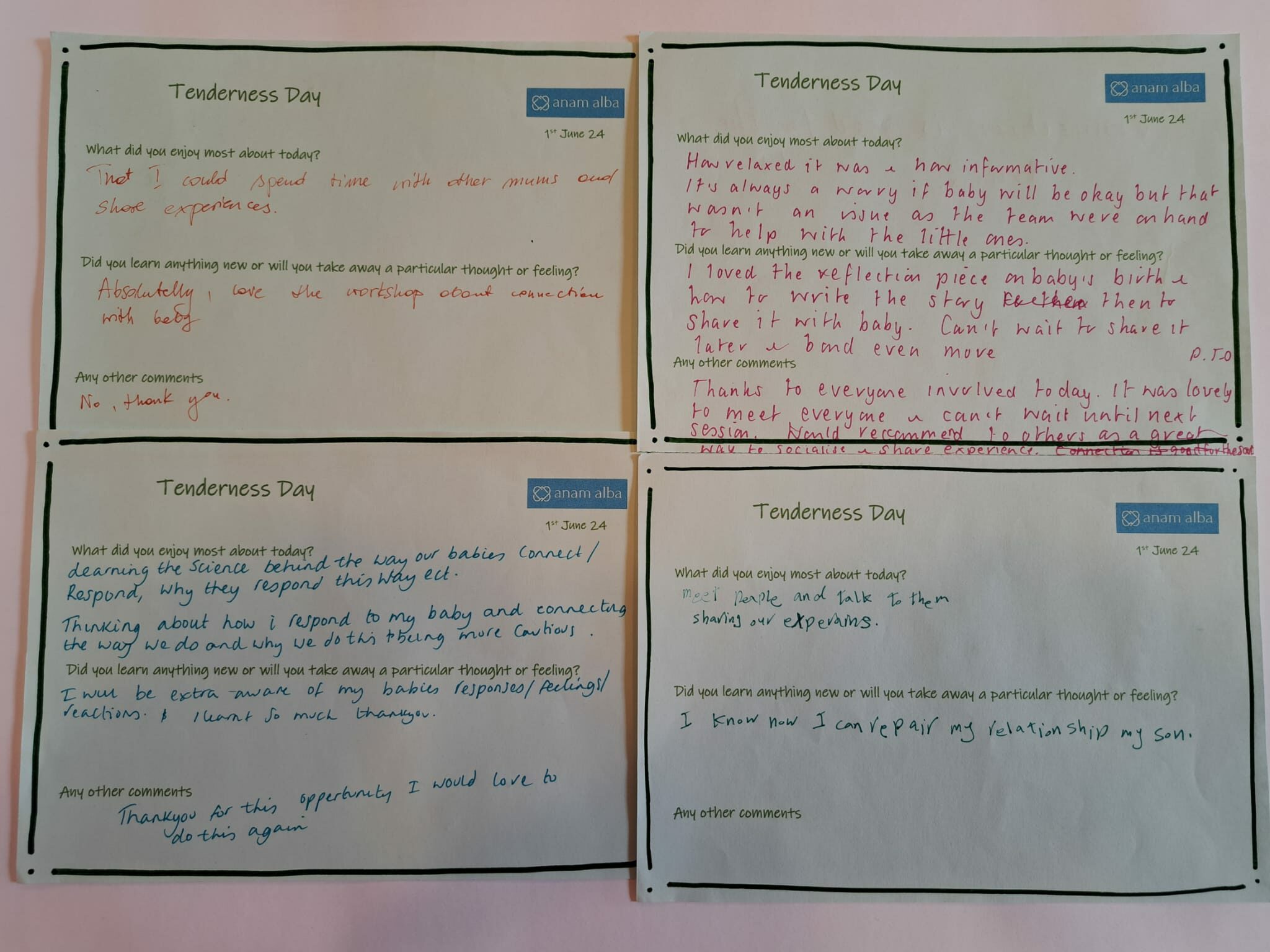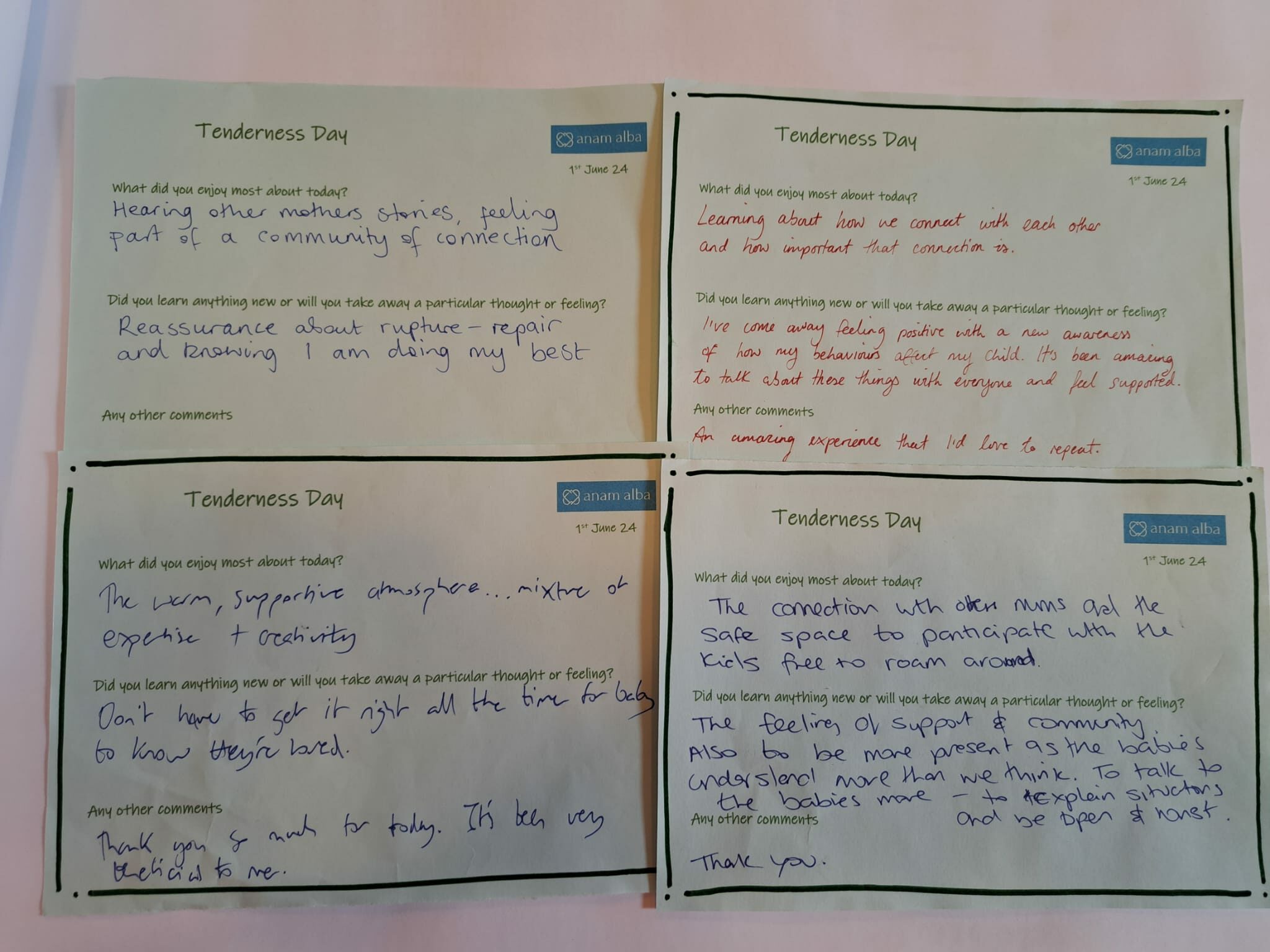 Anam Alba can design a tenderness day to fit your needs. Whatever your group or your theme we will present ways to bring you together in a specially designed space, using creative activities and the comforts of warmth, food and friendship to help you explore and tell your stories.